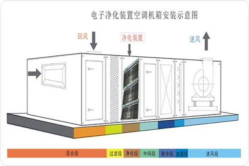 電子凈化單元:去除空氣中直徑為0.3微米以上的微顆粒,如灰塵、花粉、香煙味、廚房油煙和細菌等。