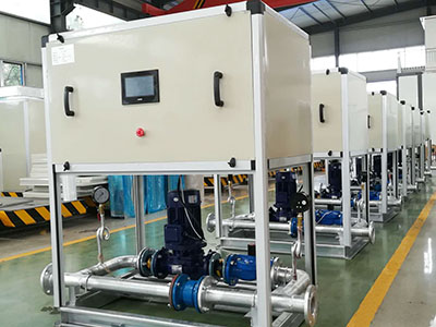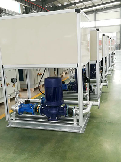 新風(fēng)防凍機(jī)組適用于北方地區(qū),包括風(fēng)溫度控制、防凍控制、以及各種連鎖保護(hù)系統(tǒng)。安裝在新風(fēng)機(jī)組、空調(diào)機(jī)組熱水的預(yù)熱盤管上,防止盤管溫度過低凍壞,同時也可防止送風(fēng)溫度過低。防凍機(jī)組與新風(fēng)機(jī)組預(yù)熱盤管串聯(lián)連接,防凍機(jī)組設(shè)置循環(huán)泵及相關(guān)自控措施,通過智能變頻控制水流量及相關(guān)聯(lián)合保護(hù)裝置,確保熱水盤管表面溫度不低于設(shè)定溫度,機(jī)組帶有缺水保護(hù)、低溫保護(hù),風(fēng)閥控制,變頻控制。